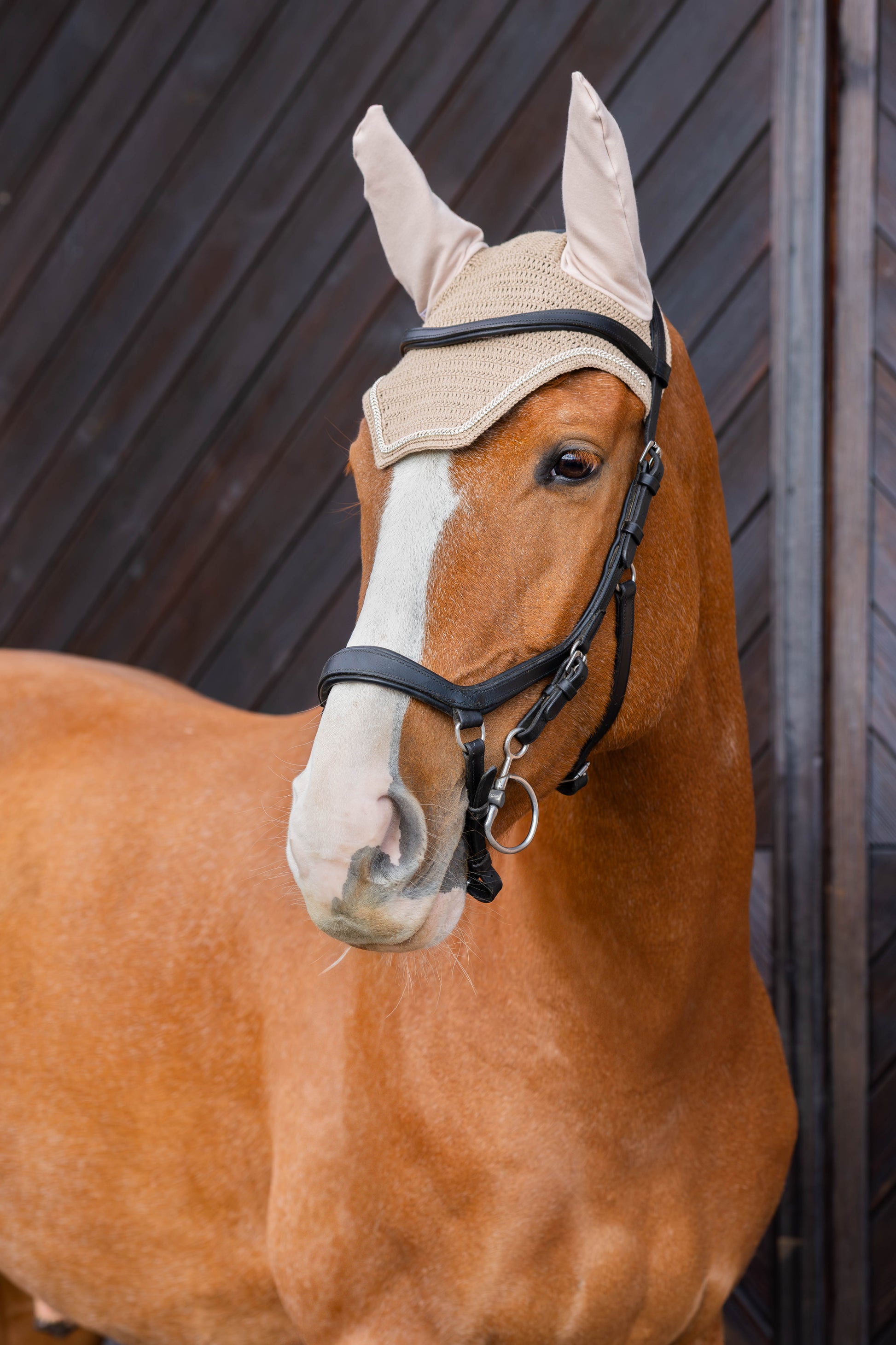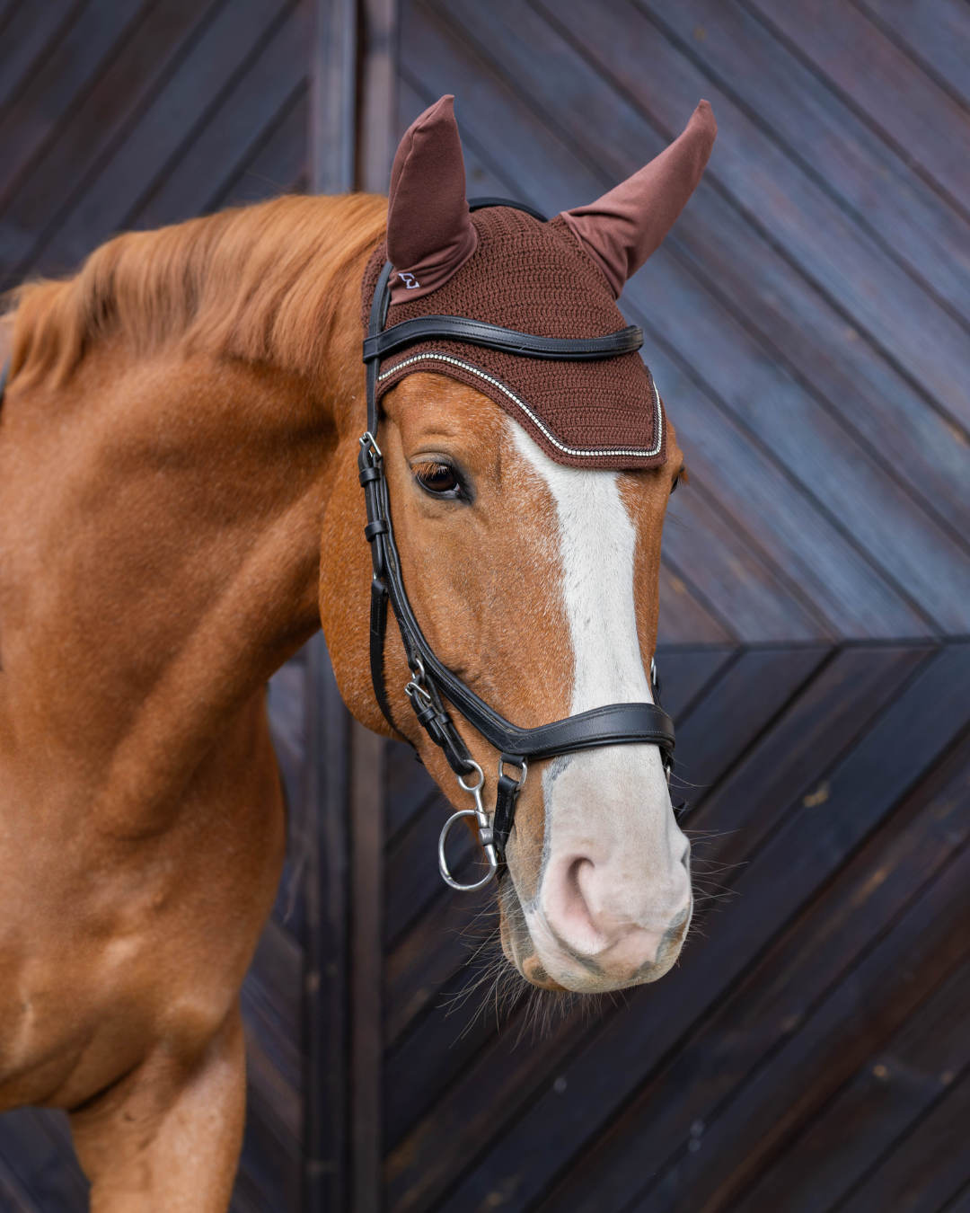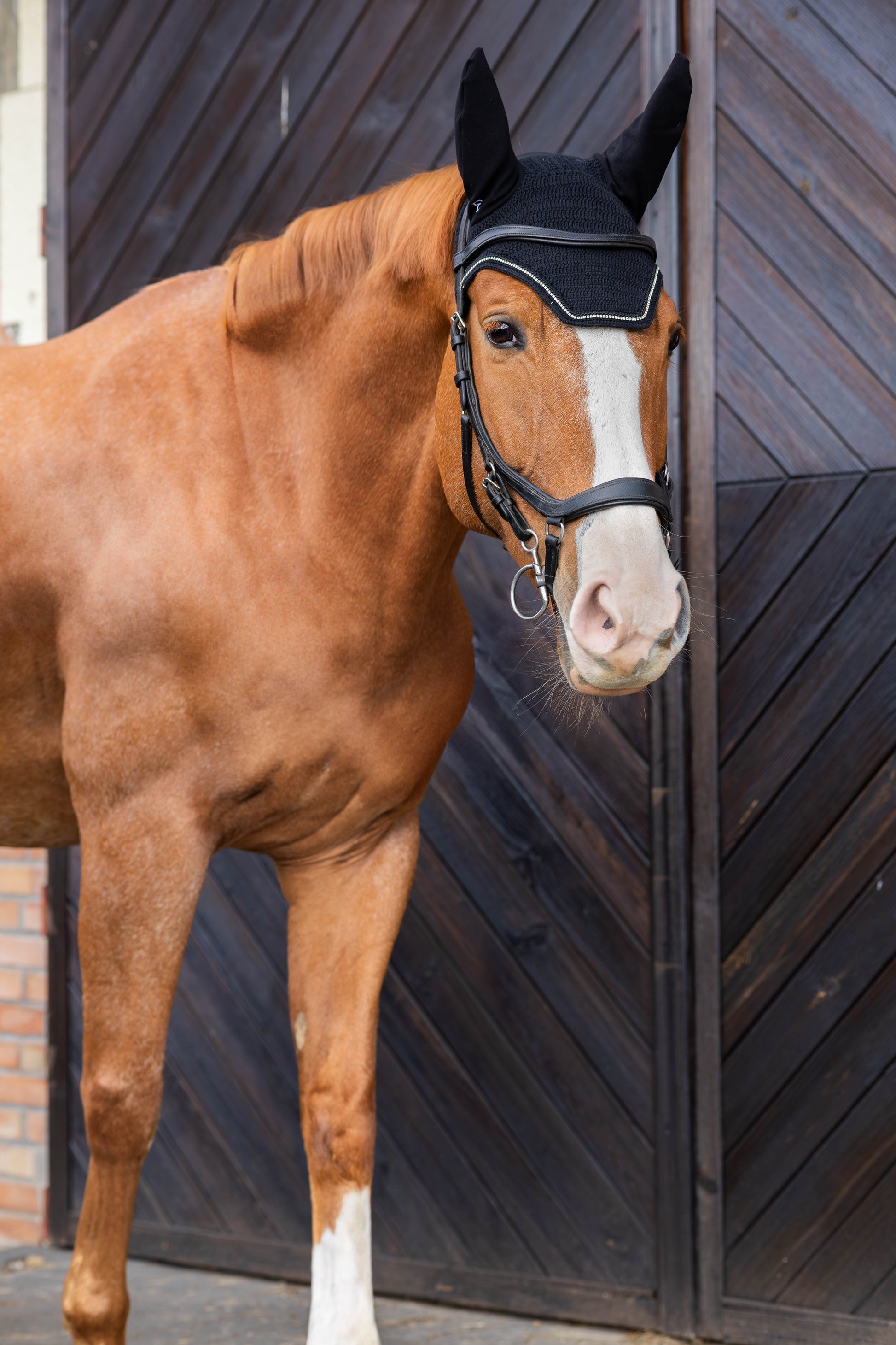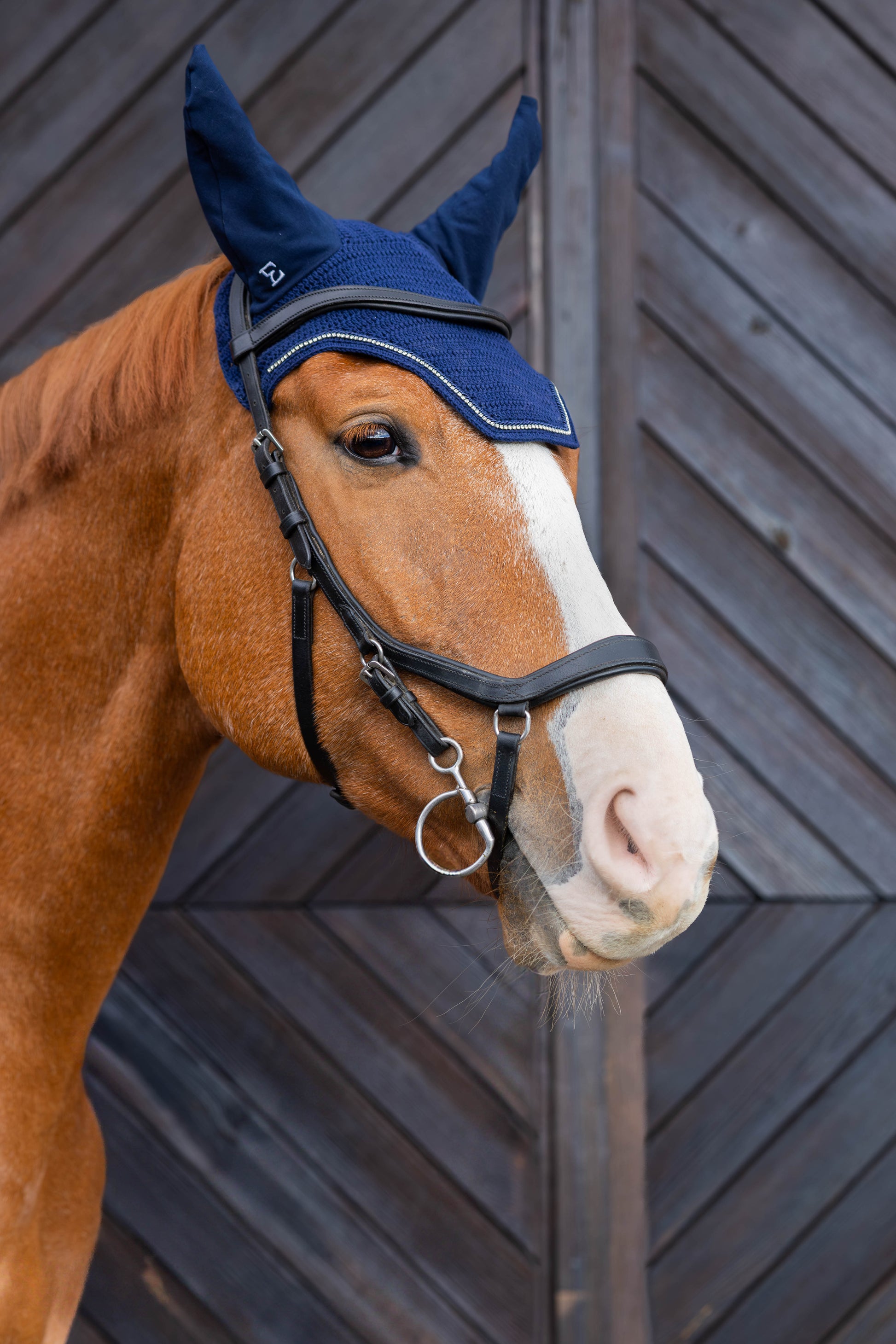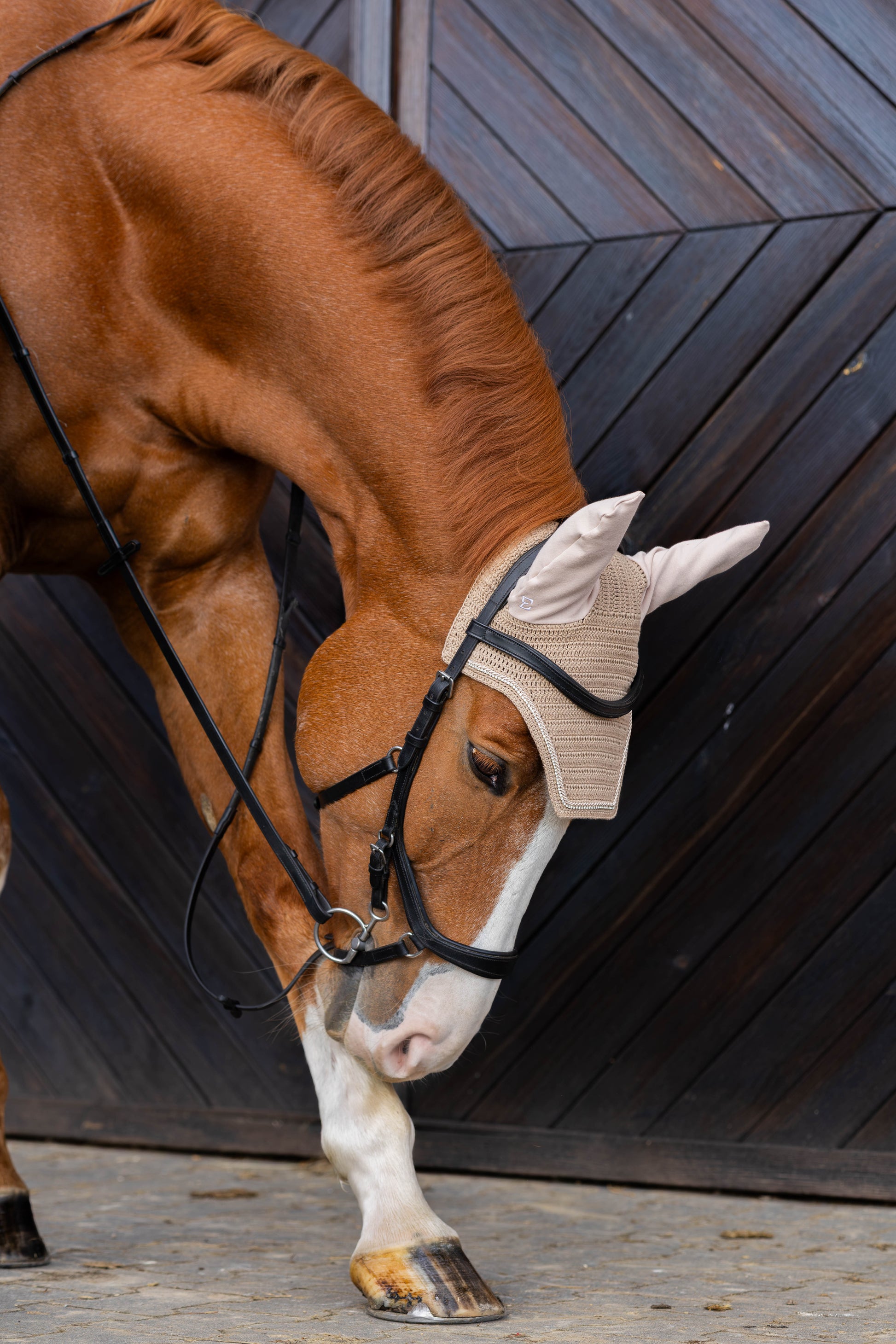 Ucho nauszników wykonane jest z elastycznej, bawełnianej dzianiny, co zapewnia idealne dopasowanie i swobodę ruchu. Dodatkowym atutem jest możliwość wyboru ucha wyciszającego, pomocnego dla płochliwych koni podczas treningów w wietrzny dzień, czy zawodów.